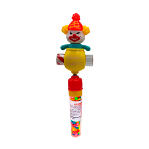 Quantidade: Caixa com 12 unidades.Material: Composição de doce e plástico seguro.Idade recomendada: A partir de 3 anos.A PALHAÇADA CANDY é perfeita para animar festas de aniversário, eventos ou simplesmente para alegrar o dia a dia, combinando o melhor do mundo dos doces e brinquedos para garantir momentos memoráveis!