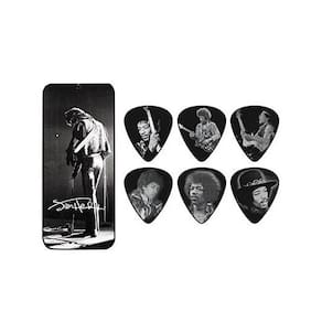 Palheta Dunlop Jimi Hendrix Retratos JHPT06M Com 12 Palhetas tradicionais feita com celulóide de alta qualidade estampadas com ilustrações sobre Jimi Hendrix. Calibre: Médio Material: Celulóide Cor: Preto/Branco Caixa Em Lata com 12 unidades Imagens Meramente Ilustrativas : 3 meses pelo Importador / Fornecedor Marca: Não Informado