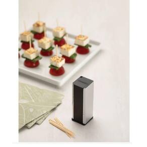 Possui um componente em plástico para armazenar os palitos, com sistema de abertura de fácil manuseio.