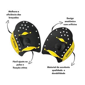 Design anatômico: Com orifícios estrategicamente posicionados para otimizar o controle da resistência da água. Apoio ergonômico para o polegar: Proporciona mais conforto e estabilidade. Tiras de silicone ajustáveis: Garantem maior conforto e segurança durante o uso. Aprimora a técnica: Melhora a eficiência das braçadas e aumenta a força muscular. Segurança: Reduz o risco de lesões por sobrecarga. Leve e durável: Flutuante na água, com material resistente.