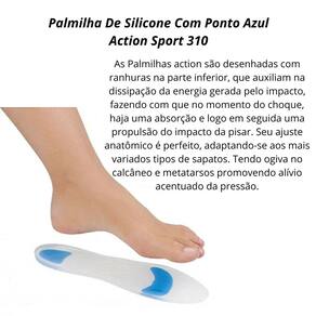 As Palmilhas action são desenhadas com ranhuras na parte inferior, que auxiliam na dissipação da energia gerada pelo impacto, fazendo com que no momento do choque, haja uma absorção e logo em seguida uma propulsão do impacto da pisar. Seu ajuste anatômico é perfeito, adaptando-se aos mais variados tipos de sapatos. Tendo ogiva no calcâneo e metatarsos promovendo alívio acentuado da pressão.