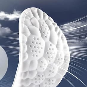 Ventilação inteligente com design em favo de mel, perfurações estratégicas ajudam na circulação de ar, mantendo os pés secos e frescos durante o dia.