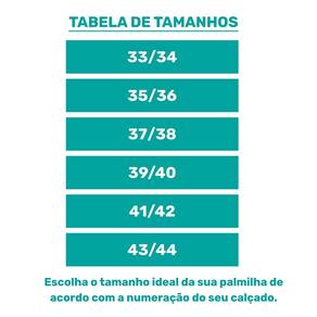 Confira o tamanho da palmilha conforme o tamanho do seu calçado!!!