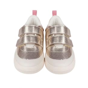 Tênis feminino em sintético dourado, clássico e atemporal para a menina usar no dia a dia e na escola! Tênis feminino com forro interno que auxilia na absorção do suor e colarinho super comfy, para maior conforto ao caminhar. Palmilha Feet Care que possui um sistema avançado de fofura, com a densidade ideal para os pés, minimizando impactos. Tênis com calce fácil , dando autonomia para as meninas e facilitando o calce para as mamães. Tênis de solado emborrachado super inovador, formando desenhos de flores, além de sua flexibilidade e aderência. O solado possuí escrita em braile indicando o lado direito e esquerdo para meninas cegas ou com baixa visão!