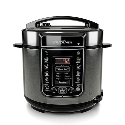 simA Panela de Pressão Elétrica BPP05P da Britânia é a aliada perfeita para quem busca tecnologia e segurança na cozinha. Com sua generosa capacidade de 5 litros, ela é ideal para preparar refeições completas para toda a família em uma única etapa. Seu design moderno em inox e o painel digital oferecem controle total, permitindo fritar, refogar e programar o preparo de suas receitas com precisão e facilidade.