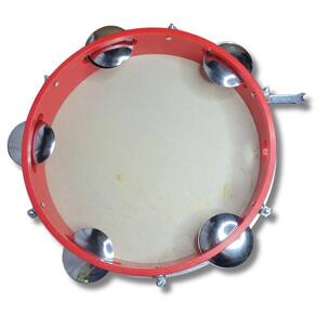 Pandeiro 10 ABS Vermelho Pele Couro Natural Vanguarda