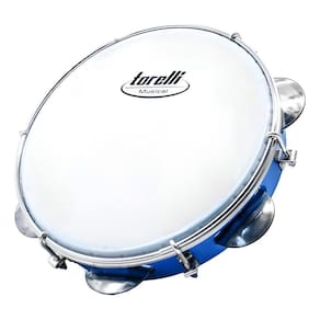 - Pandeiro injetado em abs com pele náilon. - Com 5 pares de platinelas. - Altura: 4,5 cm - Peso 0,445Kg - Fabricante: Torelli - Modelo: TP-809 AZ - Acompanha chave de afinação e capa acolchoada.