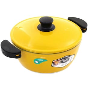 Panela 18cm Amarelo Resistente Gulê Em Alumínio 1,5 Litros - Dica do chefe. Após o uso caso surja manchas no interior da tampa ou da panela, basta ferver água com limão e vinagre branco para a remoção.