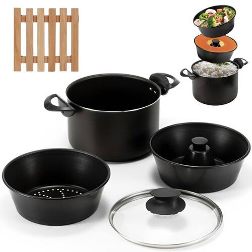 - 3 em 1 Funcionalidade: Cozinhe pudins, alimentos no vapor e em banho-maria com uma única panela. - Revestimento Antiaderente: Evita que os alimentos grudem, facilitando a limpeza e garantindo maior durabilidade. - Tampa de Vidro: Permite acompanhar o preparo dos alimentos sem perder calor, proporcionando controle e eficiência.