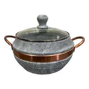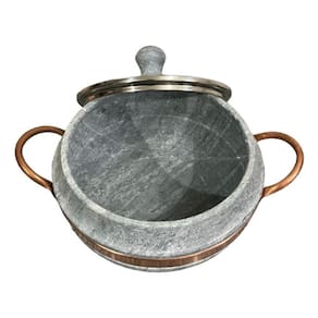 PANELA DE PEDRA SABÃO COM ALÇA DE COBRE E TAMPA DE VIDRO SÃO JOSÉ