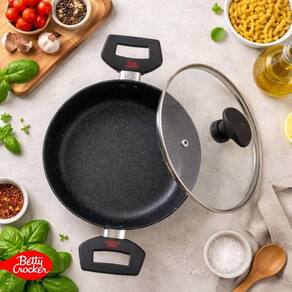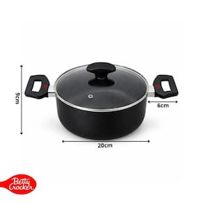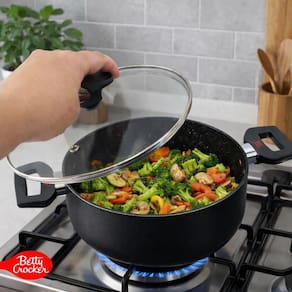 A panela caçarola de 20cm da Betty Crocker foi produzida em alumínio de 2,3mm de espessura, garantindo excelente condutividade térmica e proporcionando um cozimento rápido e uniforme, mesmo em fogo baixo.