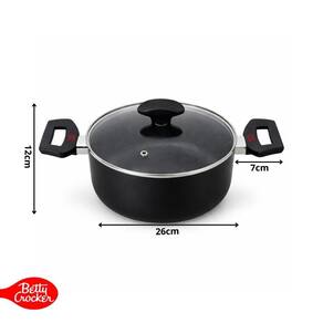 A panela caçarola de 26cm da Betty Crocker foi produzida em alumínio de 2,3mm de espessura, garantindo excelente condutividade térmica e proporcionando um cozimento rápido e uniforme, mesmo em fogo baixo. Seu tamanho é ideal para preparar receitas para toda a família, como arroz, molhos, carnes, legumes e massas.