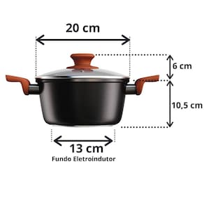 Panela Caçarola Antiaderente Colorstone Euro Modernidade, tecnologia e beleza na sua cozinha. Cozinhar é a arte de transformar sabores e aromas em receitas que agradam aos olhos e conquistam o paladar. A linha Colostone é linda e elegante trazendo com cores e texturas a inspiração para o preparo dos mais saborosos pratos. Produzidas em alumínio de alta qualidade e com bordas grossas, são resistentes, leves e não deformam. A construção em 5 camadas proporciona máxima eficiência e durabilidade. A tripla camada antiaderente evita que o alimento grude e facilita a limpeza podendo ser lavada na máquina de lavar louças. Pintura moderna e antidesgaste. Pode ser utilizada em todos os tipos de fogões, inclusive INDUÇÃO. Características: - Marca: Euro home - Diâmetro: 20 cm - Altura: 10,5 cm - espessura da borda: 5 mm - capacidade: 3,0 litros - cor: terracota - material: alumímio, parafuso inox, cabo siliconado soft touch - tampa de vidro Instruções de uso: Não coloque a peça vazia para aquecer. Mara mexer, use utensílios de silicone, nylon ou madeira. A chama ou a boca do fogão deve ser menor que o fundo da peça. Aguarde esfriar para lavar, utilizando sempre esponja macia e detergente ou sabão neutro. Caso a comida queime, deixe esfriar e aguarde alguns minutos de molho na água antes de lavar. Água com excesso de cloro pode produzir manchas.