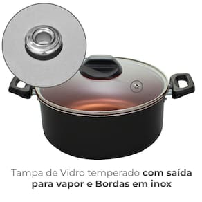 A tampa é de vidro temperado com saída para vapor e borda em inox, facilitando a visualização de seus alimentos.