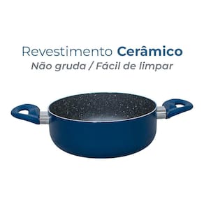 Especificações Técnicas: - Marca: Casambiente - Referência: AL156 - Material: Alumínio com revestimento cerâmico, cabos em baquelite - Cor: Azul - Capacidade: 2,3 litros - Dimensões: 20cm de diâmetro - Pode ser utilizada em fogão convencional - Pode ser lavada na lava-louças