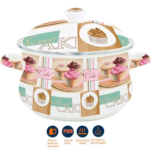 Panela Caçarola Esmaltada Cake Vintage Á Indução 3,6 Litros -