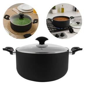 Material: Panela em Alumínio com Revestimento Antiaderente Marmorizado e Tampa em Cristal