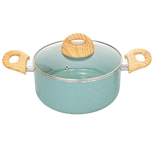 A Panela é produzida em alumínio verde com granilite branco e revestimento cerâmico na mesma cor, com classificação A do Inmetro, não gruda, é mais fácil de limpar e mais saudável, pois necessita de menos óleo para o cozimento e é livre de metais pesados.