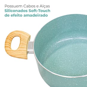 Possui cabos e alças siliconados Soft-touch com design amadeirado que dão um toque macio e não esquentam, evitando acidentes, além disso, a tampa é de vidro temperado com bordas e saída para vapor em inox, trazendo um design inovador, ideal para você que gosta de sofisticação e elegância em sua cozinha