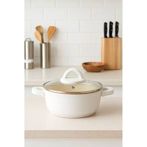 Panela Caçarola Revestida em Cerâmica com Tampa de Vidro 16cm