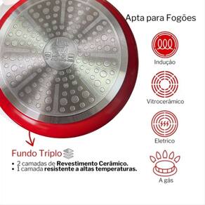 Suporta altas temperaturas, pode ir do fogão convencional e de indução e direto à mesa.Pode ir ao Forno.Em alumínio fundido e revestimento antiaderente de cerâmica, é mais resistente e reduz o uso do óleo nos seus preparos, além da sua tampa pinga gotas que auxilia no uso e na hora de servir. RecomendaçõesAntes da utilização lavar com agua morna utilizando sabão neutro enxugue e unte a parte interna com oleo e leve ao fogo baixo até que aqueça. Deixe esfriar ,lave novamente e sua panela esta pronta para usar.Use fogo baixo e evite de lavar a panela ainda quente.Não utilize utensilios metalicos e produtos abrasivos.Não se recomenda o uso na maquina de lavar.Não coloque no micro-ondas, geladeira ou freezer.