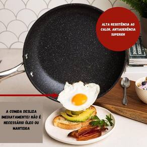 FRIGIDEIRA ANTIADERENTE Explore a frigideira ultra antiaderente, revestida 3x com pedra mineral de granito premium e reforçada com diamantes para máximo desempenho no cozimento. Liberação de alimentos fácil e sem necessidade de óleo, ideal para uma culinária saudável. CONTEÚDO DA EMBALAGEM: 1 Frigideira antiaderente CARACTERÍSTICAS: Revestimento triplo com pedra mineral de granito e diamantes Livre de PFOA, PFOS, Cinza e cádmio Resistente a arranhões e uso de utensílios metálicos Segura para forno até 260.00C Fácil de limpar e lavável na lava-louças ESPECIFICAÇÕES: Material: Alumínio com revestimento de pedra de granito Diâmetro: 24cm Peso: 1,2kg Compatibilidade: Todos os tipos de fogões transforme sua cozinha com a frigideira ultra antiaderente, perfeita para refeições saudáveis e versáteis. Adquira já e experimente o diferencial na sua culinária
