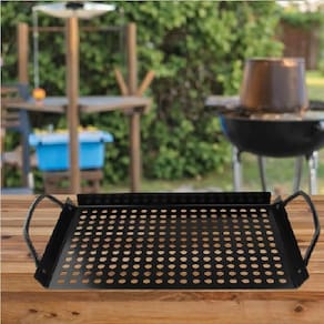 A Bandeja Grill para Churrasqueira na cor Preta é ideal para preparar alimentos grelhados com praticidade, segurança e muito mais sabor no seu churrasco.