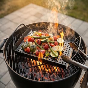 Perfeita para grelhar legumes, carnes, peixes, frango, pão de alho e frutos do mar, evitando que alimentos pequenos caiam entre as grades da churrasqueira. Seu formato facilita o manuseio dos alimentos, garantindo um preparo uniforme.