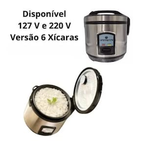 Características Gerais do produto Panela de arroz elétrica de inox cometros capacidade para 10 xícaras de arroz cru, sistemetrosa de aquecimetrosento autometrosático, recipiente interno antiaderente.