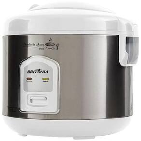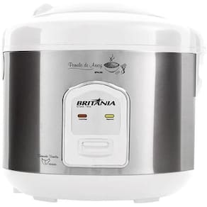 Panela de arroz elétrica Britânia com capacidade para 5 xícaras, função manter aquecido, tigela antiaderente, acompanha colher e copo medidor.Lâmpada piloto
