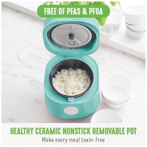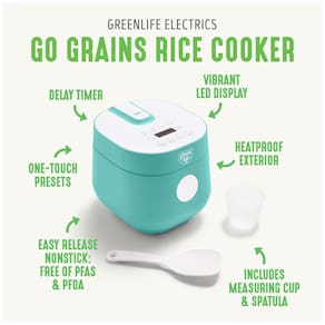Prepare arroz branco, arroz integral, quinoa e aveia cortada com aço de forma perfeita com a Panela de Arroz GreenLife, que possui design moderno e desempenho superior. Com um painel de controle fácil de usar e timer ajustável, você terá resultados perfeitos com apenas um toque. A parte externa vibrante e resistente ao calor não só é bonita em qualquer cozinha, mas também mantém suas superfícies confortáveis. O revestimento cerâmico saudável é livre de PFAS, PFOA, grafite e cádmio, tornando a culinária mais fácil e segura. Além disso, as peças removíveis são seguras para lava-louças, facilitando a limpeza após o uso. A capacidade espaçosa permite preparar 4 xícaras de arroz cozido, sendo ideal para uso diário. Inclui copo medidor e espátula.
