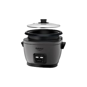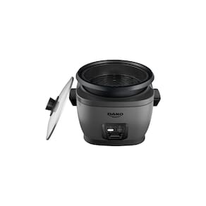 Panela de Arroz Elétrica Dako com capacidade para 10 xícaras (4 litros), tampa de vidro com saída de vapor, cuba antiaderente, função manter aquecido e desligamento automático. Inclui bandeja perfurada para cozimento a vapor, copo medidor e colher.Lâmpada piloto