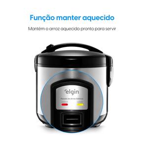 Mais praticidade e estilo na hora de cozinhar com a Panela Elétrica de Arroz 5 Xícaras 110V da Elgin! Com capacidade para 5 xícaras e 400W de potência, ela cozinha um arroz soltinho e saboroso em poucos minutos. Após o preparo, a função 'Aquecer' é ativada automaticamente, mantendo o arroz sempre na temperatura ideal para servir.