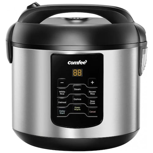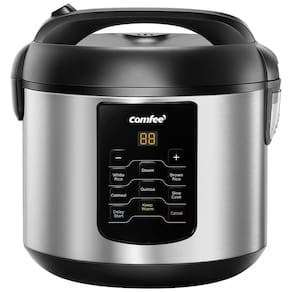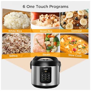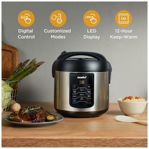 Multifuncional com 6 programas de cozimento digital, incluindo arroz branco, arroz integral, vapor, cozimento lento, quinua e aveia. Possui temporizador de atraso de 12 horas e função de aquecimento automático por 12 horas.Lâmpada piloto