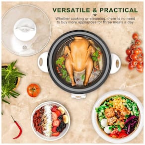 COZINHA TUDO EM UM Mais do que apenas arroz fofo, aveia, sopa, quinoa e macarrão, ou frutos do mar a vapor, legumes, peixe, ovos, até mesmo acompanhamentos, panela quente. Não há necessidade de comprar mais aparelhos, a panela de arroz profissional torna mais fácil preparar seu café da manhã saudável, almoço, jantar ou refeições diárias, também satisfaz sua família com várias ideias e receitas culinárias.