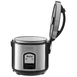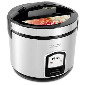 - Capacidade para 5 xícaras de arroz - Tigela com revestimento antiaderente - Luzes indicadoras de funcionamento - Faz diversos tipos de arroz - Cozinha legumes e verduras - Bandeja perfurada para cozinhar no vapor - Acompanha colher e copo medidor - Tampa vedada com alça, botão de travamento e saída de vapor - Tampa com visor em vidro para acompanhar o preparo do alimento - Coletor de água - Cordão elétrico removível.Lâmpada piloto