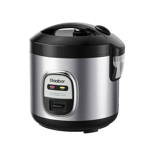 Fabricada com estrutura em aço inoxidável e revestimento antiaderente, a panela de arroz Gaabor oferece aquecimento tridimensional e cozimento uniforme, evitando que os alimentos queimem. Além disso, possui tampa basculante com trava, válvula de vapor removível e acessórios inclusos como colher, copo medidor e bandeja para cozimento no vapor, tornando o uso diário mais completo e versátil.