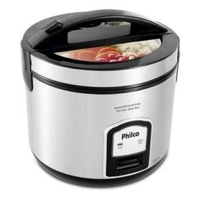 A panela de arroz elétrica philco ph5p é perfeita para fazer diversos tipos de arroz, legumes, verduras e sua badeja perfurada permite o cozimento a vapor. A panela tem capacidade para até 5 xícaras de arroz, coletor de água e tampa com visor em vidro para acompanhar o preparo do alimento. Conteúdo da embalagem: 01 - panela de arroz visor glass inox philco cracterísticas: - capacidade para 5 xícaras de arroz - tigela com revestimento antiaderente - luzes indicadoras de funcionamento - bandeja perfurada para cozinhar no vapor - acompanha colher e copo medidor - tampa vedada com alça, botão de travamento, saída de vapor e visor em vidro - coletor de água - cordão elétrico removível especificações técnicas: - marca: philco - potência: 400w - cor: prata - revestimento: inox - capacidade: 5 xícaras - alça: sim - copo dosador: sim - espátula: sim - bandeja perfurada: sim - display: mecânico - peso líquido kg : 1,74 - peso bruto kg : 2,03 - dimensões do produto axlxp : 24,3 x 23 x 22cm - vinisound - Este produto possui 12 meses de garantia. Imagens meramente ilustrativas. A garantia é responsabilidade do fabricante e esta limita se apenas á troca de qualquer produto encontrado com defeitos de fabricação desde que tenha sido utilizado corretamente ou devidamente instalado por um profissional qualificado.