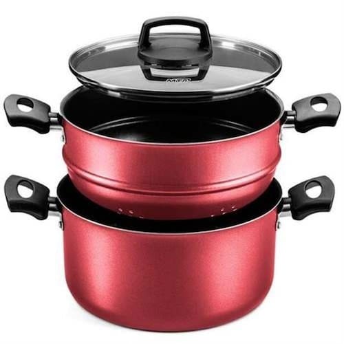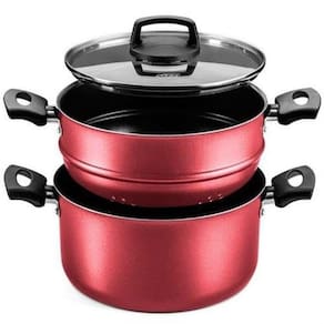 Panela De Cozimento A Vapor Antiaderente Vermelha - Vermelho