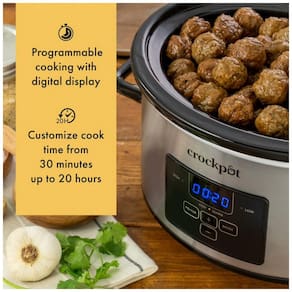 A Panela de Cozimento Lento Programável CrockPot 3,79 litros Travel Proof Cook e Carry é o utensílio ideal para preparar refeições deliciosas de forma prática e segura. Com a capacidade de 3,79 litros, tampa com trava, alças convenientes e display digital, você terá total controle do cozimento. Feita em resistente aço inoxidável, possui 18 configurações programáveis para atender suas necessidades culinárias. Além disso, é fácil de limpar, podendo ser colocada na lava-louças. Aproveite a qualidade Crock-Pot!