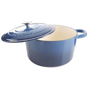 Panela de barro artesanal redondo esmaltado ferro fundido forno holandês, 7 litros, azul safira com tampa Recomenda se lavar à mão Perfeito para cozinhar lentamente, ferver, refogar, assar e muito mais A construção durável em ferro fundido retém e distribui o calor uniformemente O acabamento em esmalte de porcelana é fácil de limpar e naturalmente antiaderente Marca: Não Informado