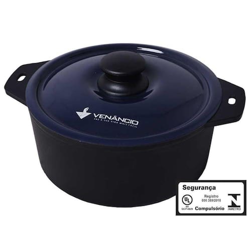- Puxador da tampa em baquelite antisséptico resistente à médias temperaturas, fixado através de parafuso em aço inoxidável; - Opção de tampas coloridas, estampadas em aço carbono, esmaltadas à fogo; - Excelente acabamento com tinta protetora preto fosco à base de água; - Curada em forno contínuo à 180 C; - Tinta preto fosco com certificação em laboratório credenciado pela anvisa (atóxica); - Embalagem individual em papel]ao forçado; - Tampa esmaltada azul.