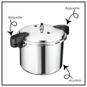 Panela 20 Litros Fechamento Externo Alumínio Cuidados Importantes: Evite bater a panela, deformações podem interferir no fechamento da panela e consequentemente impactam em seu funcionamento. Cuidado com produtos químicos pois podem manchar o alumínio. Ao manusear a panela, enquanto estiver quente, segure apenas as alças. Não utilize a panela em fornos. Não utilize a panela para frituras, ela é recomendada apenas para o cozimento dos alimentos com água. Não deixe no alcance de crianças. Após o cozimento, caso tenha dificuldade em abrir a tampa da panela, não force as alças, pois ainda pode conter pressão interna. Centralize bem a panela com a chama do fogão, nunca deixe as chamas subirem pelo corpo da panela ou ficarem em contato com as alças. Quando remover o anel de vedação e válvulas, certifique-se de colocá-las na posição correta. Características: - Altura: 26,4cm - Altura com tampa: 35,5cm - Diâmetro: 35,5cm - Comprimento com cabo: 48,5cm - Capacidade: 20L - Pressão nominal: 80KPA - Material: Alumínio - Marca: Class Home - Cor: Prateado - Conteúdo: 1 Panela Cuidados antes do uso: Para a limpeza da válvula controladora , puxe-a para cima até desencaixar. Para colocar novamente basta encaixá-la até descer completamente. Pino da válvula controladora pode conter acúmulo de gorduras e restos de alimentos ocasionando o entupimento do pino central gerando um mau funcionamento, danos a panela e até acidentes. Para evitar é indicado sempre antes de usar, limpar o interior do pino com acessórios como limpador/protetor do pino central que acompanha o produto, para fazer a desobstrução da passagem de vapor. Basta tirar o pino para limpar e encaixá-lo novamente.