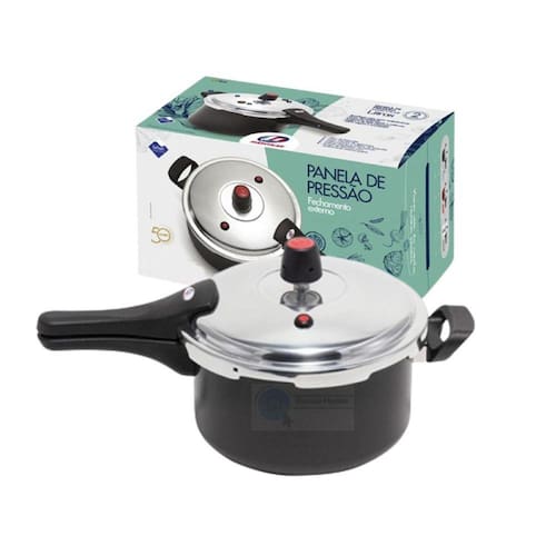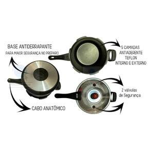 Panela De Pressão 3,0 Litros Fechamento Externo Antiaderente Teflon Preta 5 Camadas Teflon Certificado Pelo Inmetro Panela de pressão 3,0 Litros Fechamento Antiaderente Teflon Panela de Pressão 3,0 litros Fechamento Externo antiaderente Teflon 5 camadas, cabo e alça antitérmicos. Muita praticidade na sua cozinha garantindo mais comodidade no uso. Os produtos Marcolar são fabricados no melhor padrão e com alumínio de alta qualidade, uma empresa com mais de 50 anos no mercado. As peças são de extrema durabilidade e resistência. Sendo reconhecida como uma empresa que alia competência técnica e compromisso para entregar os melhores produtos aos seus clientes. Características:Capacidade: 3,0 litrosAntiaderente interno pretoAntiaderente externo pretoCabo em BaqueliteCertificado pelo INMETRO Livre de PFOA
