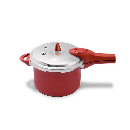 Panela De Pressão 4,2 Litros Antiaderente Cerâmico Indução Carmim Preassure Brinox 4952/102Com 4 dispositivos de segurança - Uma trava, duas válvulas de trabalho e um escape de segurança - A panela de pressão da linha Preassure conta com estrutura de alumínio que cozinha os alimentos por igual e mais rápido, dissipando melhor o calor, proporcionando um maior aproveitamento de nutrientes dos alimentos agora com exclusivo fundo de indução, que funciona em todos os tipos de fogões, para você passar menos tempo cozinhando e ter mais segurança durante os preparos. Além disso, suas paredes externas possuem pintura na cor camurça trazendo mais estilo para a sua cozinha. Seu cabo e alça de baquelite proporcionam mais resistência e melhor manuseio. A panela de pressão Preassure tem diâmetro de 20 cm e 14,5 cm de altura com capacidade para 4,2 litros.Características Material Alumínio | Antiaderente | Pintura metálica | 4 Dispositivos de segurança | Certificação compulsória certificada pelo OCP 0003, registro 003497/2020 e classificação de antiaderência A (ótima), conforme Portaria Inmetro 499/2021.MedidasDiâmetro 20 cm | Altura 14,5 cm | Litragem 4,2 LitrosOrientaçãoSempre que for utilizar sua panela de pressão, verifique se a borracha está devidamente no lugar e se ela não está ressecada. Caso isso aconteça, é importante trocar a borracha da sua panela. Além disso, veja se a válvula de controle não está entupida, se está bem enroscada e encaixada. Quanto a válvula de segurança, é importante verificar se ela não está levantada. Independentemente da capacidade da sua panela de pressão, é recomendado utilizar apenas 2/3 de sua capacidade com alimentos e água. O outro 1/3 deve ser deixado livre para que o ar quente acumule dentro e faça o cozimento dos alimentos. Caso contrário, o vapor sairá com líquidos pela válvula de controle, o que gera vazamento e entupimento da válvula. Ao final do tempo de cozimento, com o fogão desligado, você deve esperar que a panela elimine o vapor sozinha.