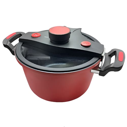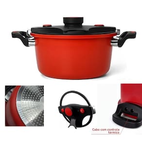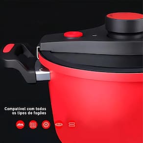 Características: Revestimento antiaderente interno e externo Alumínio cerâmico de qualidade Fundo de indução (compatível com todos os fogões) Tampa de vidro Temperado com visualização total Cozimento uniforme e preservação dos nutrientes Dispositivos de segurança: botão de fechamento, válvulas e escape Capacidade: 6 litros Tamanho: 24 cm Cor: Vermelha
