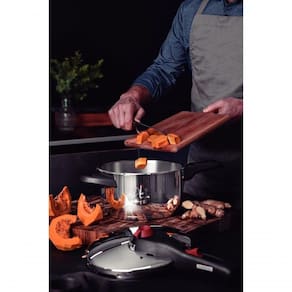 A Panela de Pressão Tramontina em Aço Inox Fundo Triplo 22 cm de diâmetro 6 L da linha Solar é a opção ideal para quem busca praticidade na cozinha, seja para preparos longos ou rápidos. Com 5 dispositivos de segurança, ficou ainda mais fácil e tranquilo de usar uma panela de pressão. Produzida em aço inox e com fundo triplo (aço inox + alumínio + aço inox), ela distribui o calor uniformemente, proporcionando um cozimento mais rápido e uniforme. A Panela de Pressão da Tramontina será o grande astro da sua cozinha.