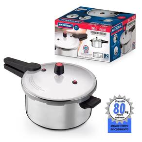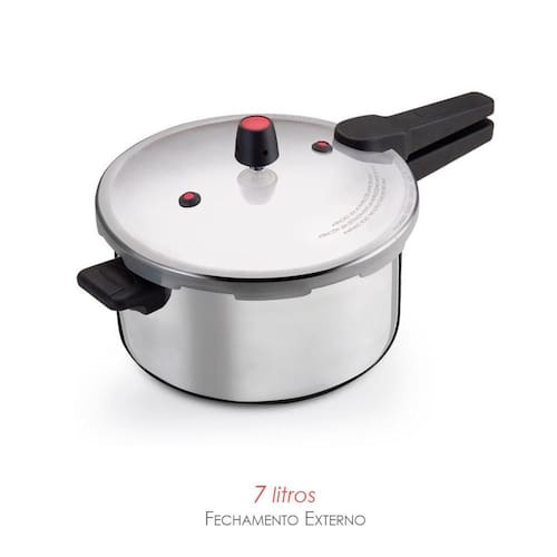 Panela 7 Litros Fechamento Externo Panela - Sua Aliada na Cozinha Fechamento externo para máxima segurança durante o cozimento Material super resistente que conserva aromas e sabores Alumínio como condutor de calor, cozinhando os alimentos mais rapidamente Leve e confortável, ideal para transportar onde precisar Cabo e aba em baquelite, duráveis e resistentes a altas temperaturas Dois apitos na parte superior da tampa para maior praticidade A Panela é perfeita para facilitar seu dia a dia na cozinha, proporcionando refeições deliciosas e seguras. Desfrute do prazer de cozinhar com eficiência Especificações: Material: Aço Polido Dimensões: Diâmetro: 40cm x Altura: 16cm Peso: 2,180kg Capacidade: 7 Litros Cor: Cinza Conteúdo: 01 Panela 7 Litros com fechamento externo Marca: Não Informado