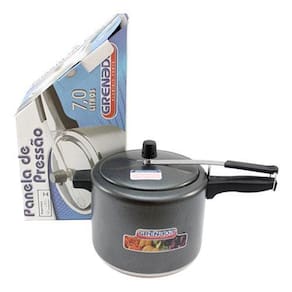 Panela de pressão segura e de alta qualidade, confeccionada em alumínio , fabricada pela indústria de alumínios grenada, tradicional empresa do setor, com 21 anos de atuação;