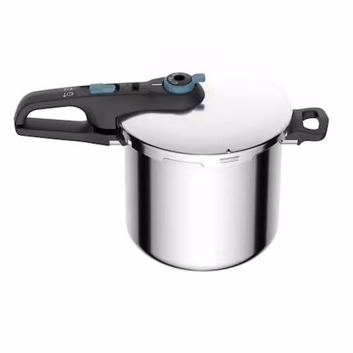 Essa panela possui dois níveis de pressão, para preservar os nutrientes e garantir o cozimento adequado: um para ingredientes mais robustos, como proteínas e grãos, e outro para preparar alimentos mais delicados, como vegetais.